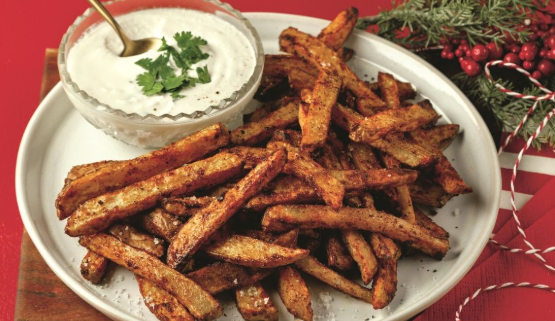 - Dans un grand bol, mélanger les bâtonnets de pommes de terre avec l’huile, le chipotle, le paprika fumé et la poudre d’ail. Saler et poivrer.